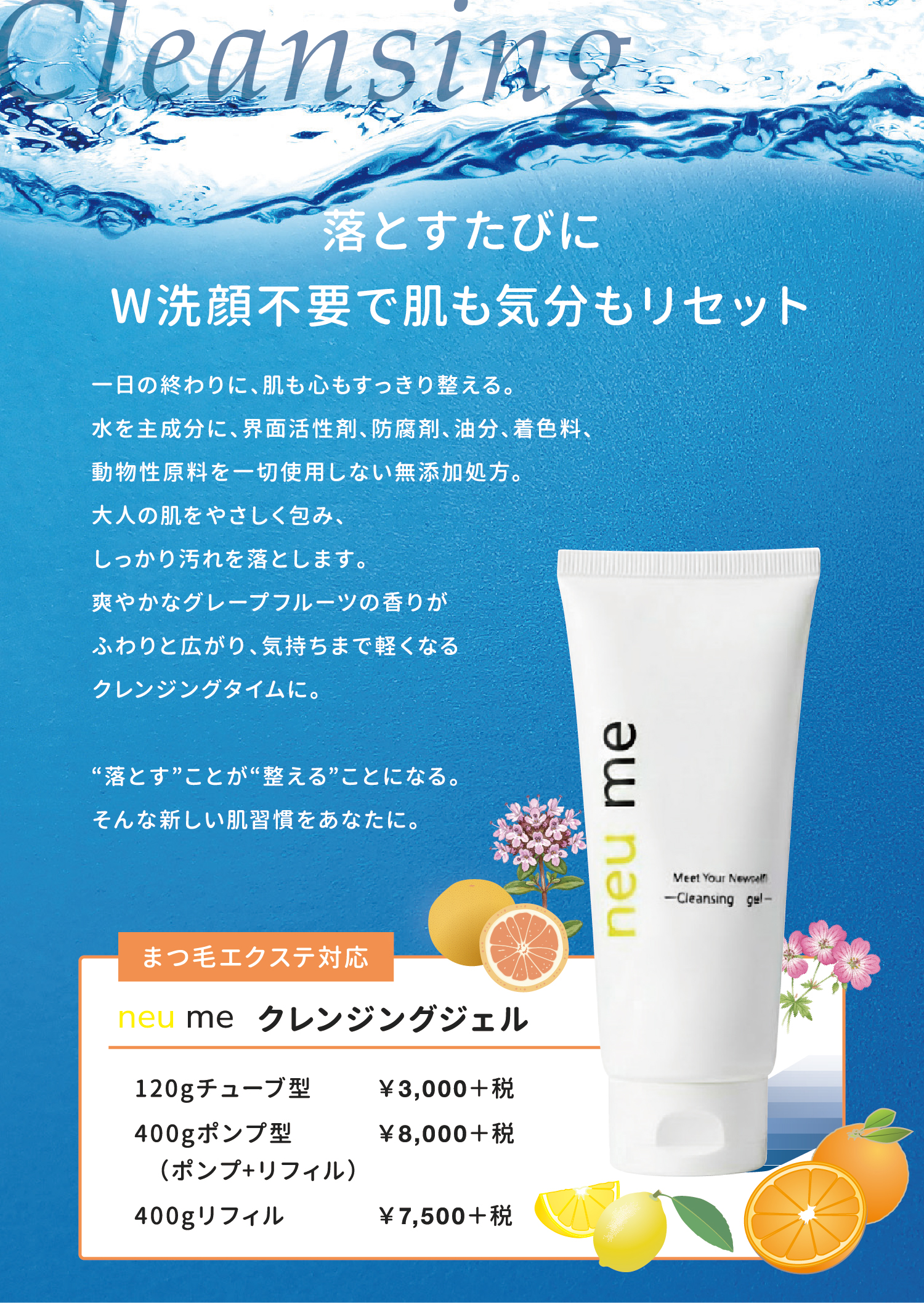 指先にジェルを2〜3cm出し、指で顔全体に塗り、(落ちにくいメイクには多めにのせて、なじませて)水またはぬるま湯で洗い流してください。